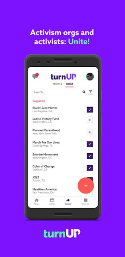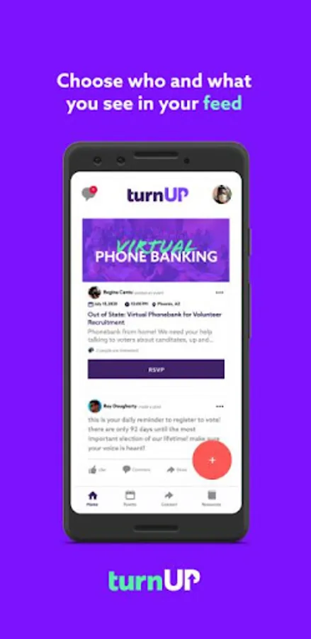 Fill your feed with issues, events, people, resources, and organizations that you care about. See what your friends and your selected organizations have been doing. Find and share events, digital activism opportunities, and post like you would on other social media platforms.
