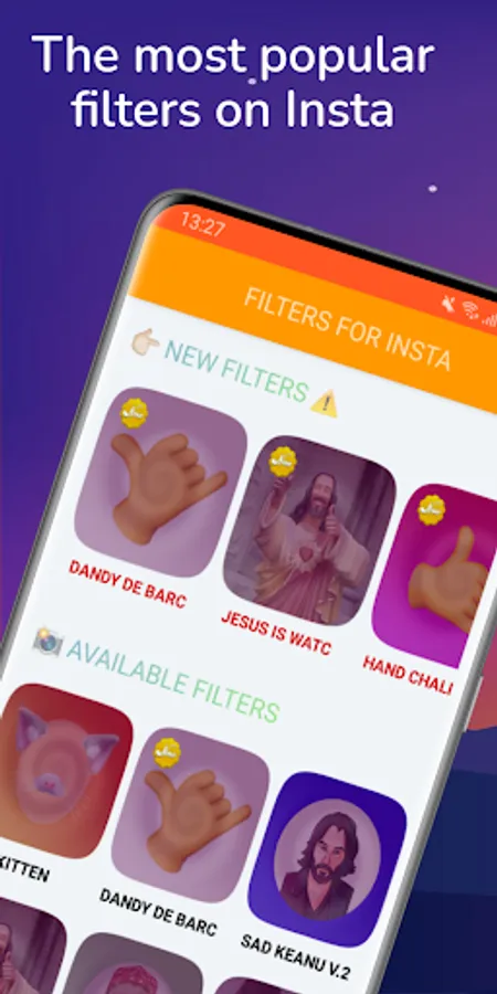 You will not have to install anything other than the app, no download on your mobile or any other strange way to install the filter, just one click to open the insta app with your new filter ready to test.