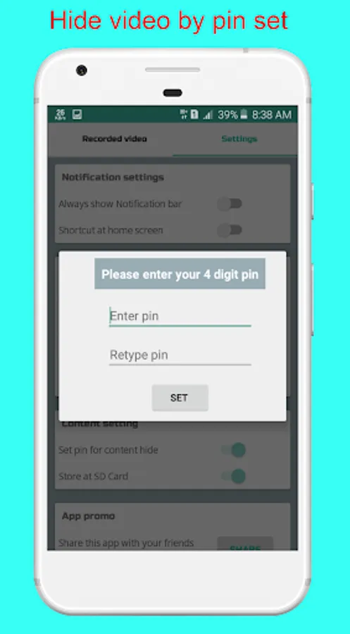 ------ Can choose to hide recorded video content, by setting some access PIN.