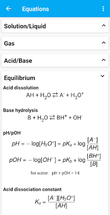 - Tools for solution preparation (dilution, molar mass, molar concentration and density), and converter
