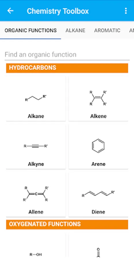 - Organic functional groups (Amino acids, Carbohydrates, Aromatic compounds, Nucleosides)