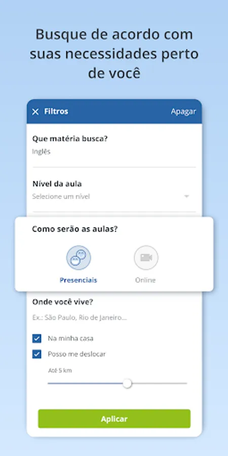 Download the Sua Aulas Particulares app now and join the largest community of private teachers and students in Brazil.