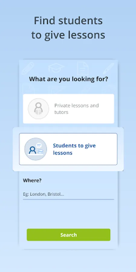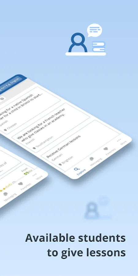 Publish your advert for free. There are no commissions. You decide how much you want to charge. Flexible hours. Students will contact you using the app’s messaging service.