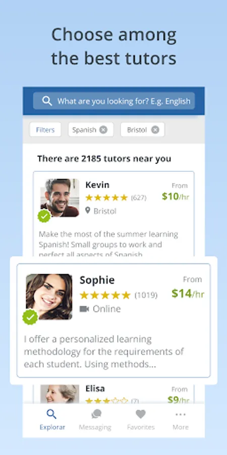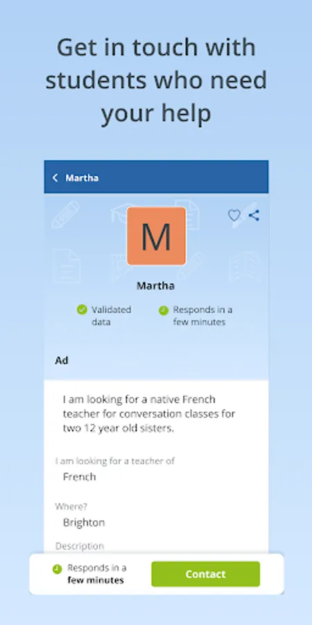 Contact private tutors or students looking for a tutor: use the chat to send them a message and show your interest.