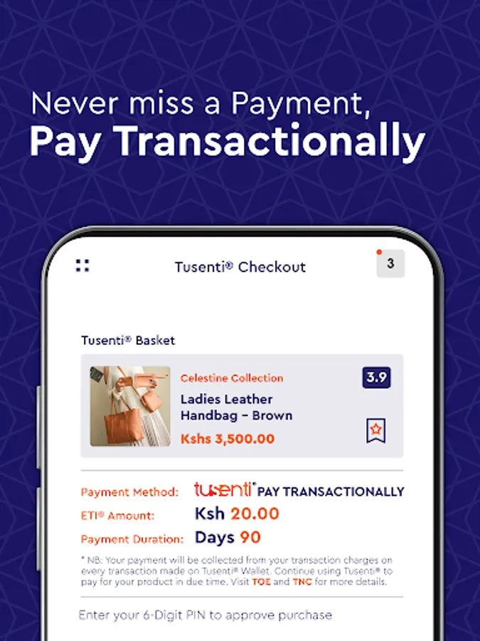 Pay your kids school fees, rent/mortgage, insurance premium, loan repayments, online and offline shopping using your transaction charges on Tusenti® Wallet.