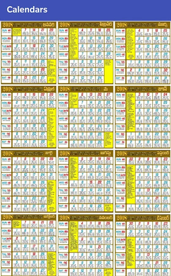 Calendar 2018 app has high quality monthly images that allows you to view maasam, vaaram, thithi, and nakshatram information for all days in the year 2018 .