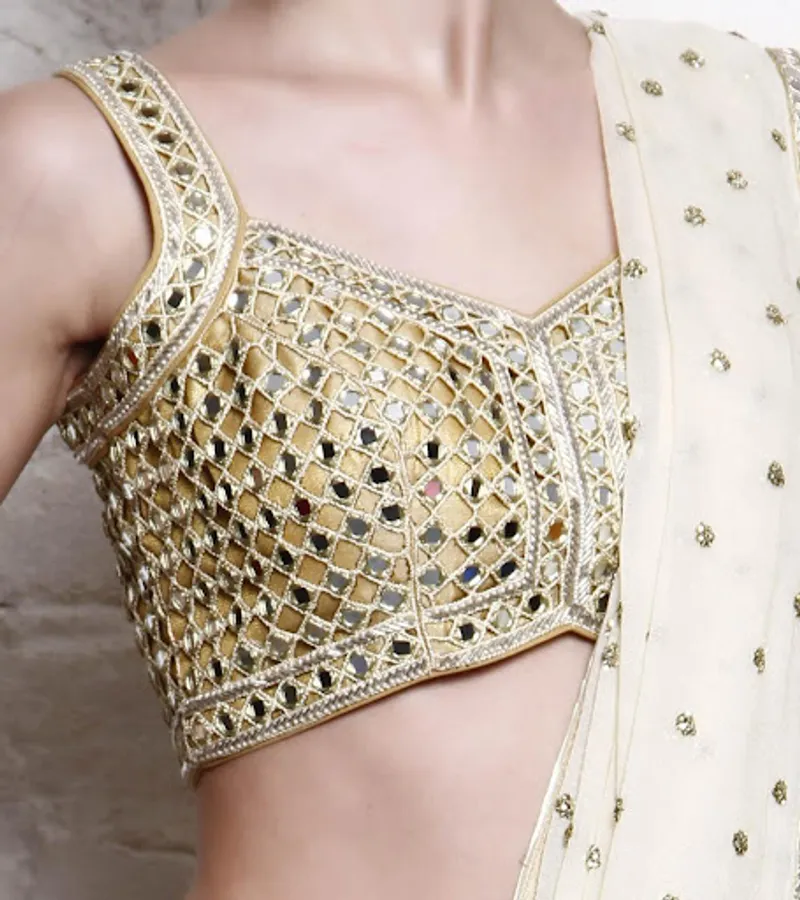 Collection of different mirror work blouse designs like Aari Work / Maggam Work, Zardosi Work and Designer blouse patterns are included in this collection. Both traditional and modern mirror work patterns are available in this collection that are suitable for special occasions like weddings, parties and festivals.