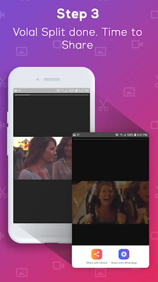 Upload your video stories to Instagram/WhatsApp without any Limit. As Instagram and Whatsapp have 10 sec and 30 sec time limit respectively, this app will help you to video split into any parts based on the duration you set in the configuration so you could still upload your video partially. Download Story Cutter for Instagram now to start splitting.