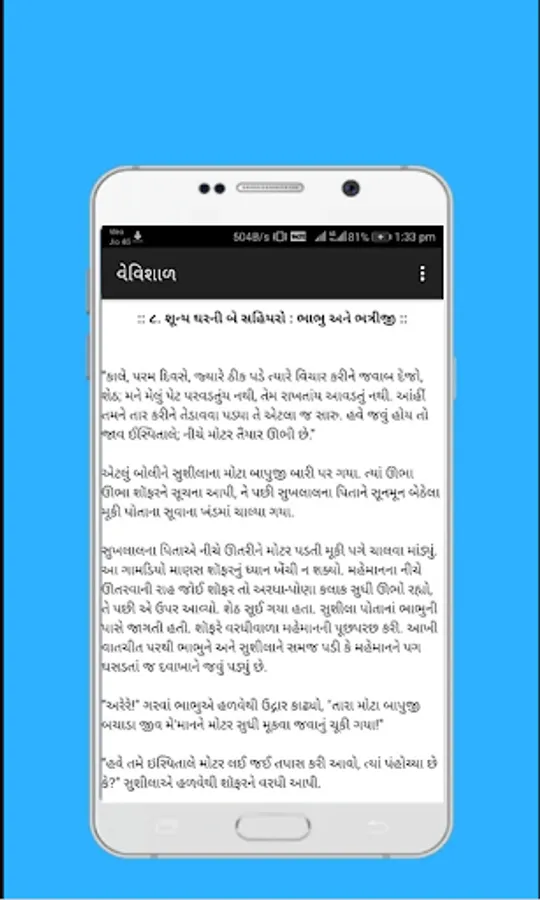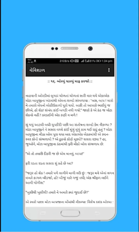 દોસ્તો આ બુક ખુબ જ સરસ છે.વેવિશાળ વાર્તા માં ખુબ જ રસપ્રદ કિસ્સાઓ છે. જયારે તમે આ બુક વાંચતા હો ત્યારે તમને મનમાં એટલી બધી આતુરતા હોય છે કે હવે શું થશે...મિત્રો ખુબ સરસ બુક છે. એકવાર જરૂર વાંચજો