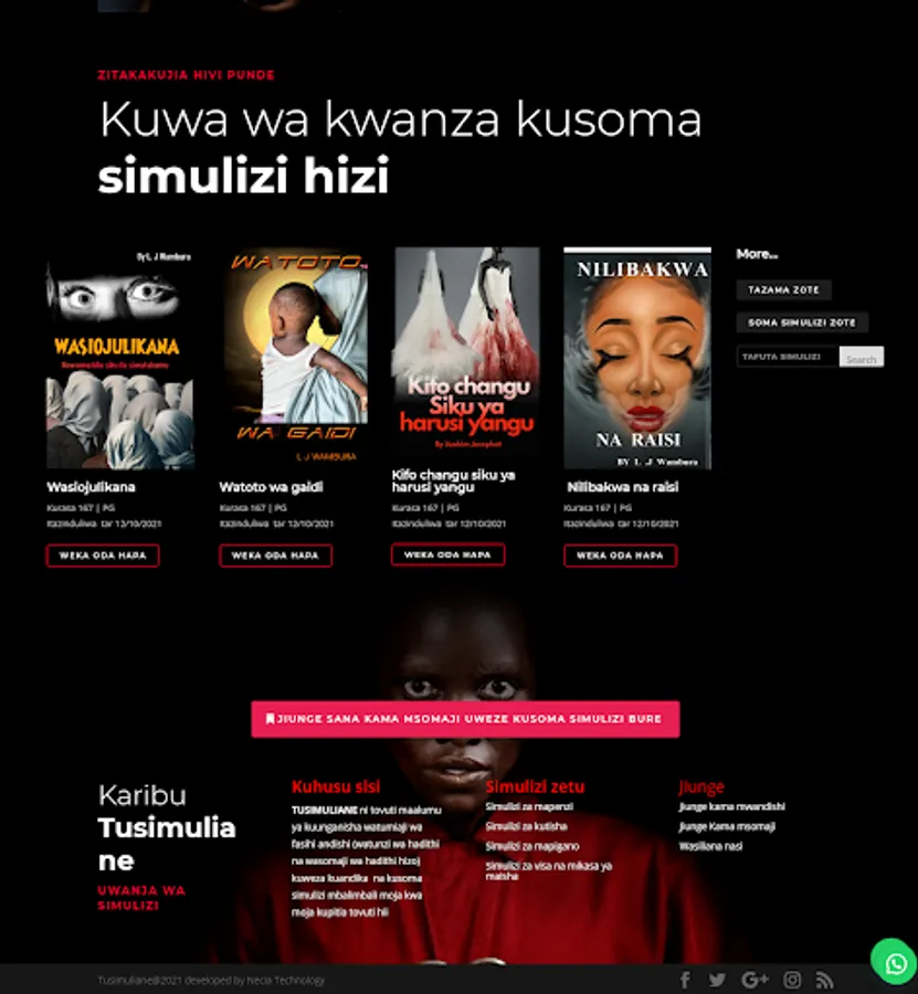 Tusimuliane ni tovuti bora ya hadithi na simulizi za kiswahili kutoka kwa waandishi hodari na wenye vipaji vya hali ya juu.