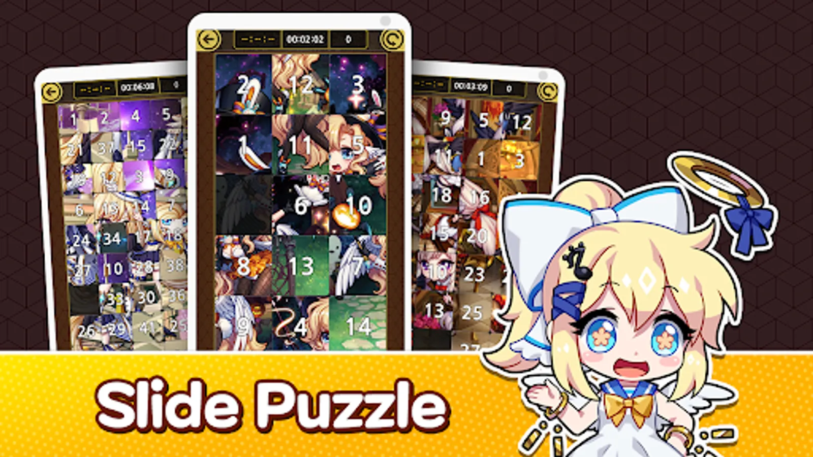 Experience a Slide Puzzle with Various Collectible Character Illustrations for Free.