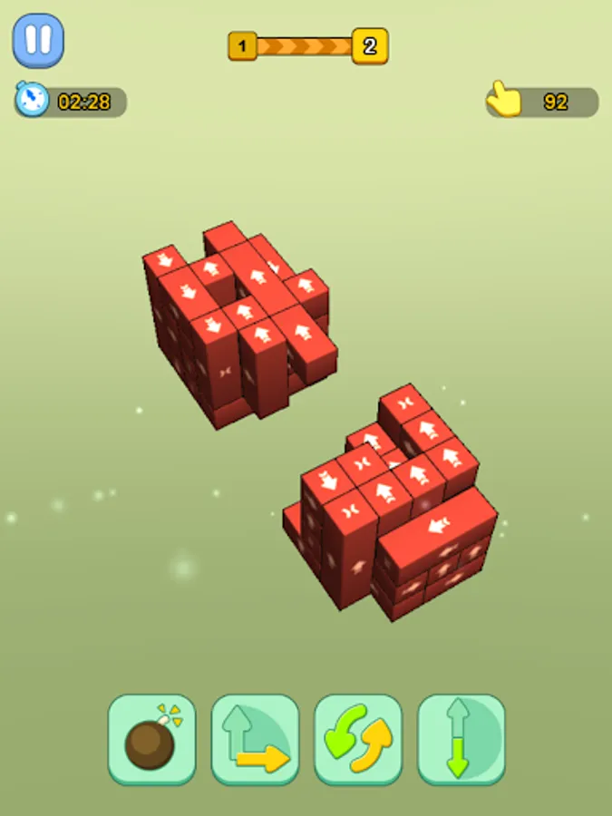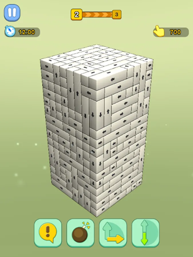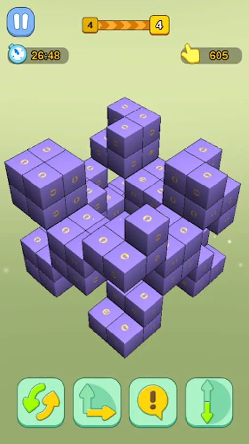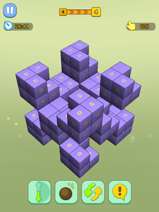 Use your finger to swipe the screen and rotate the cube, changing the perspective to eliminate blocks from different angles. As the game progresses, the blocks will form larger and more complex structures, posing a greater challenge. You need to think outside the box, plan your moves strategically, and solve these tricky levels.