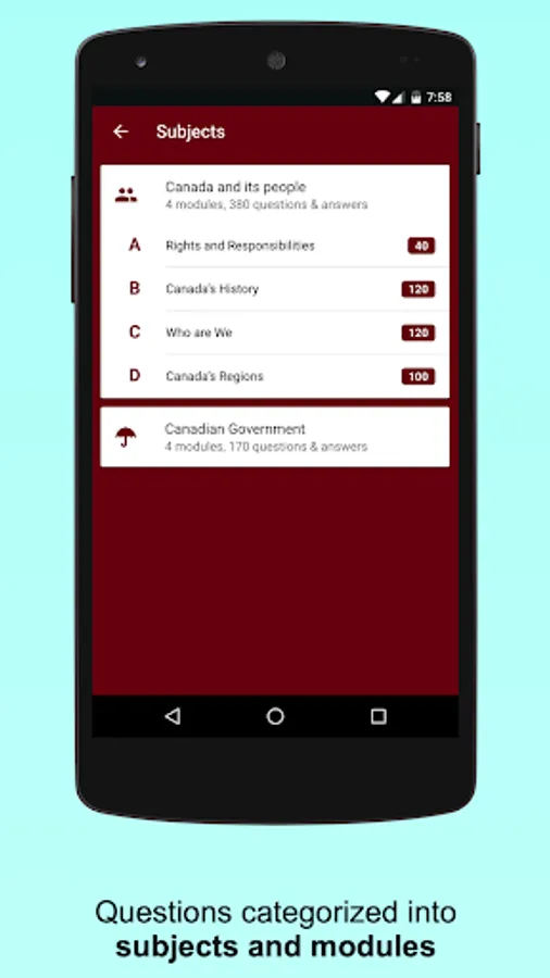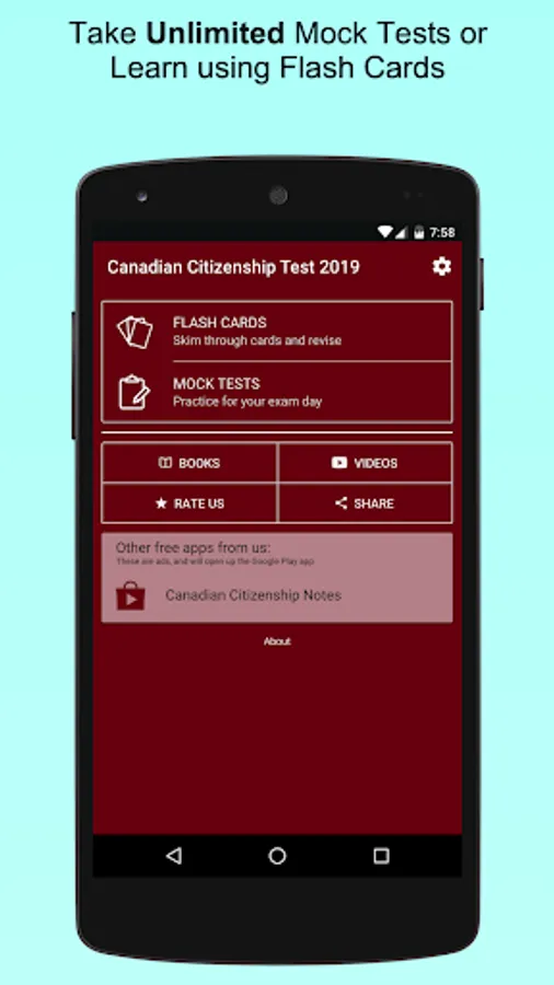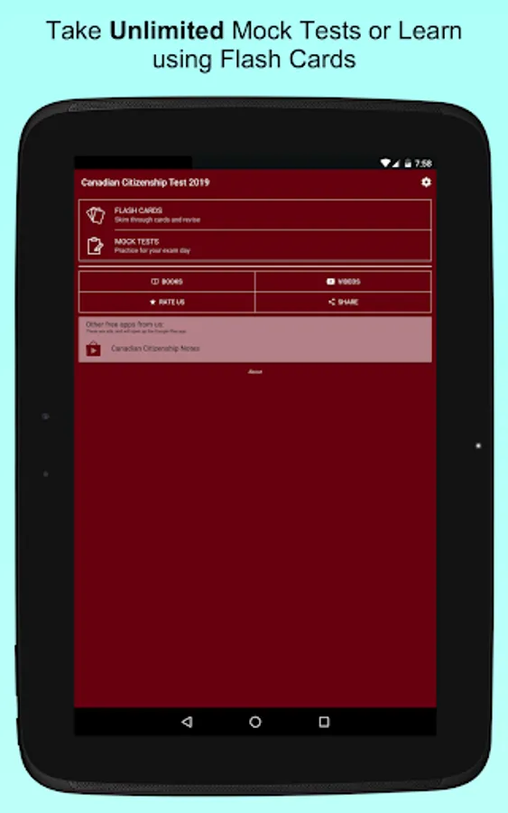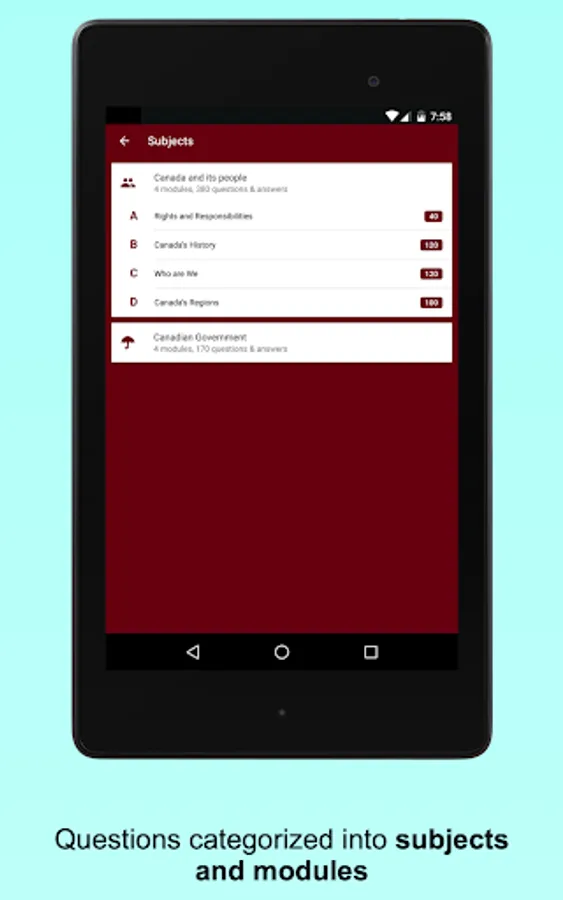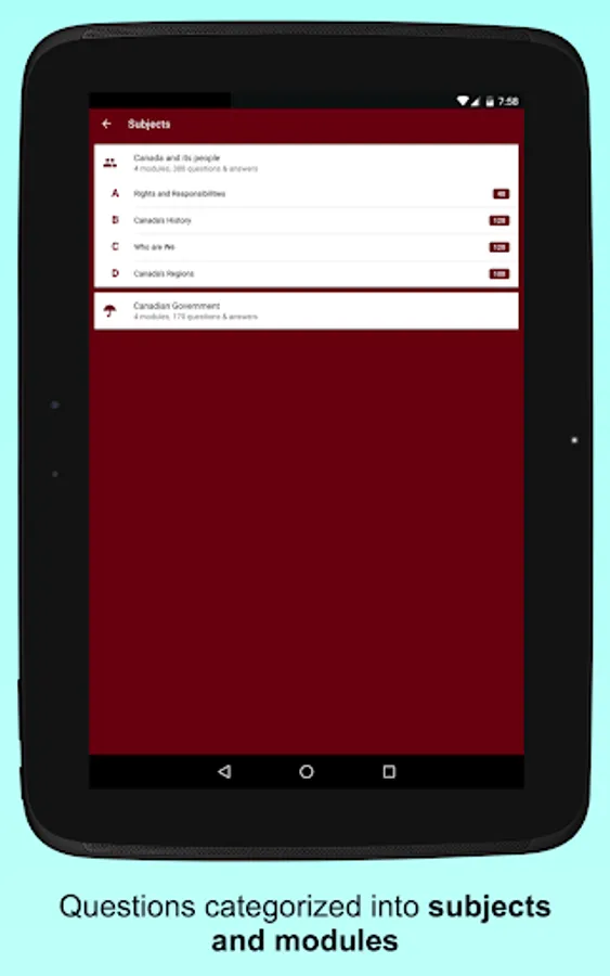 This application is used to study and prepare you for the Canadian Citizenship Test.