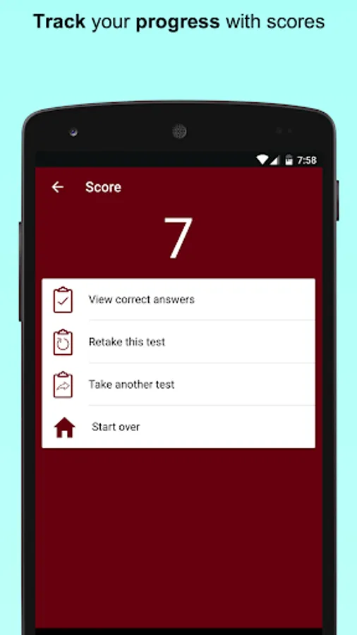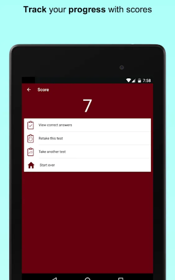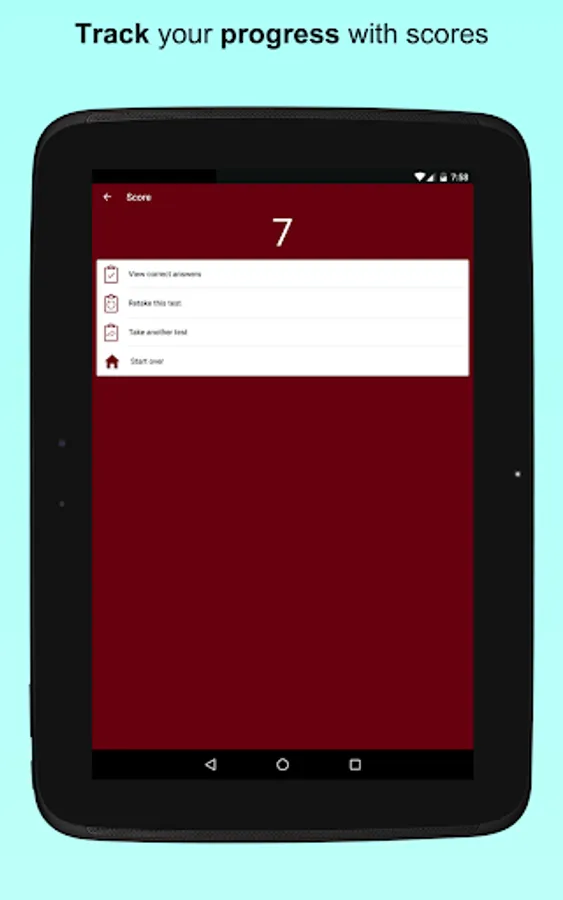 Take timed tests or study using flash cards in convenient chunks; view correct answers at the tap of a button. Get a different set in each consecutive session till you complete all the available questions in the bank.