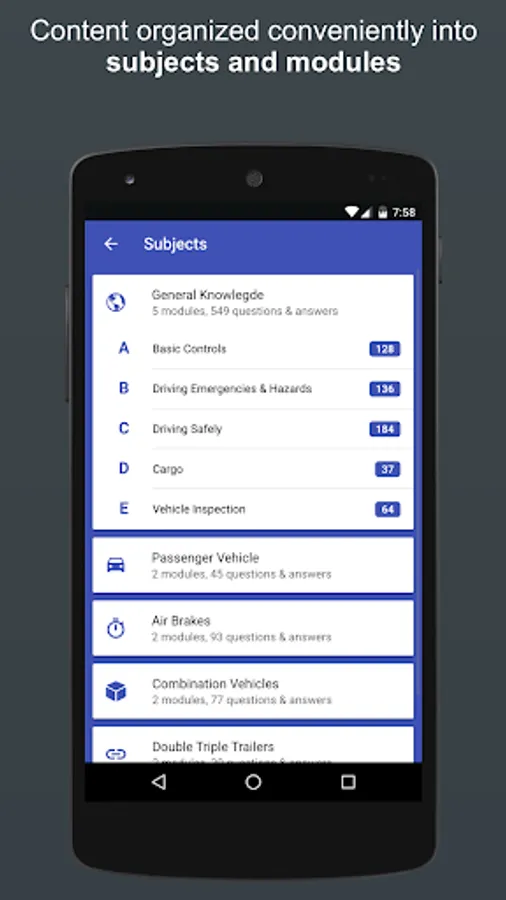 Enjoy a collection of over 1150 study notes across the topics for Commercial Drivers License (CDL) Test, arranged by Subjects, modules and chapters. Explore options to set reminders, Report problems, and subscribe to our channel and notes.