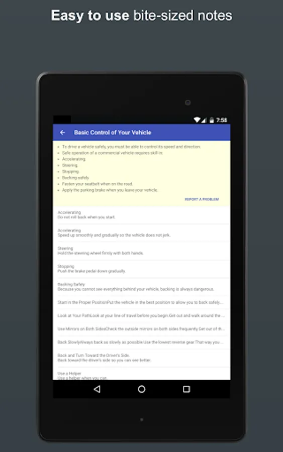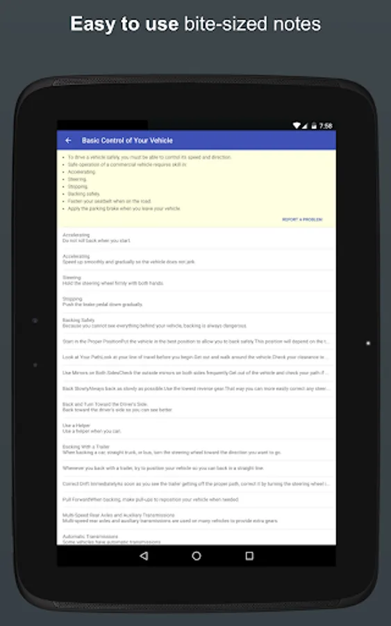 Content covered in our Commercial Drivers License (CDL) Study Notes app: