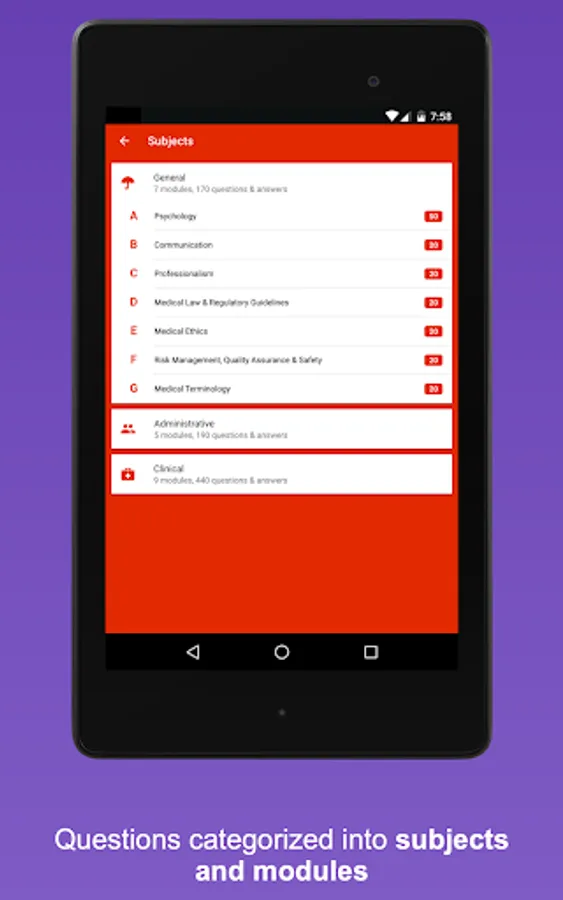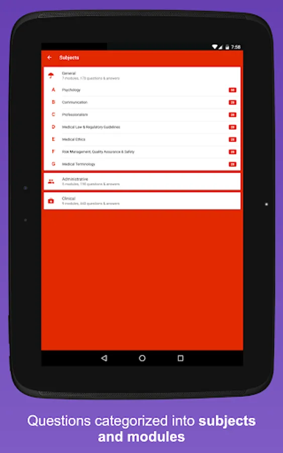 ■ 800 Practice exams questions arranged by Subjects and modules with answers and explanations for better understanding.