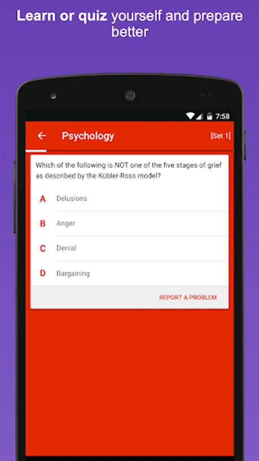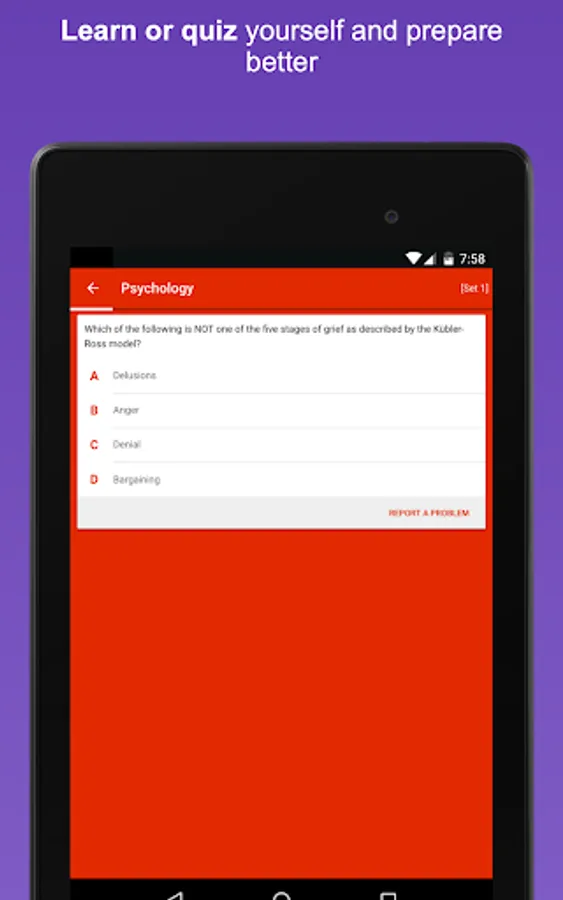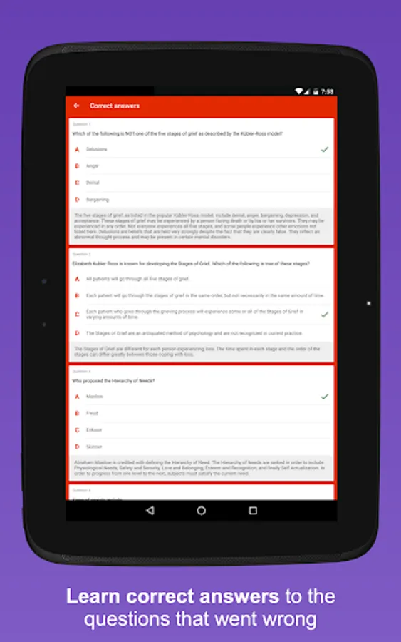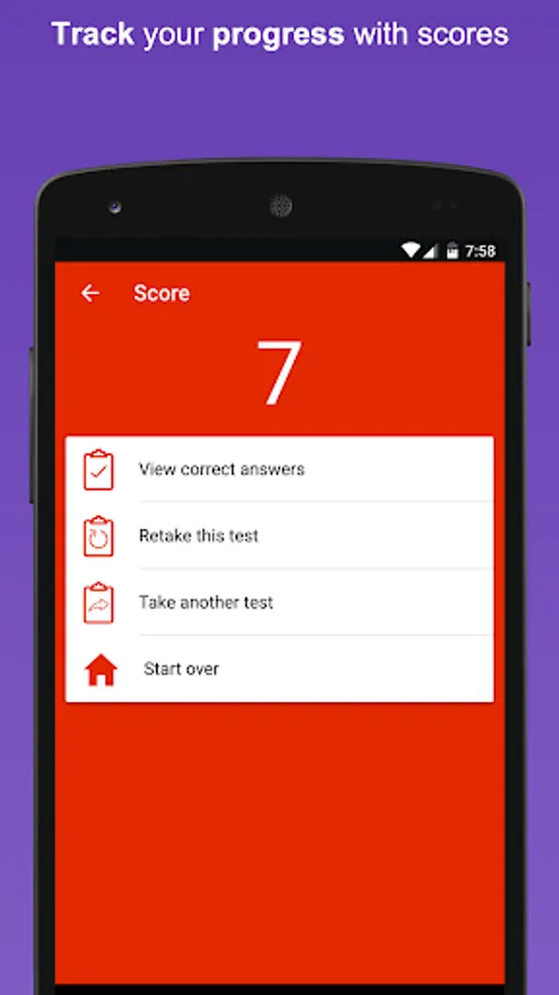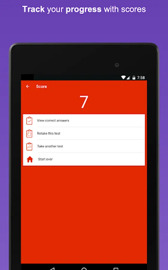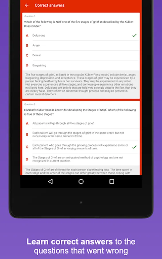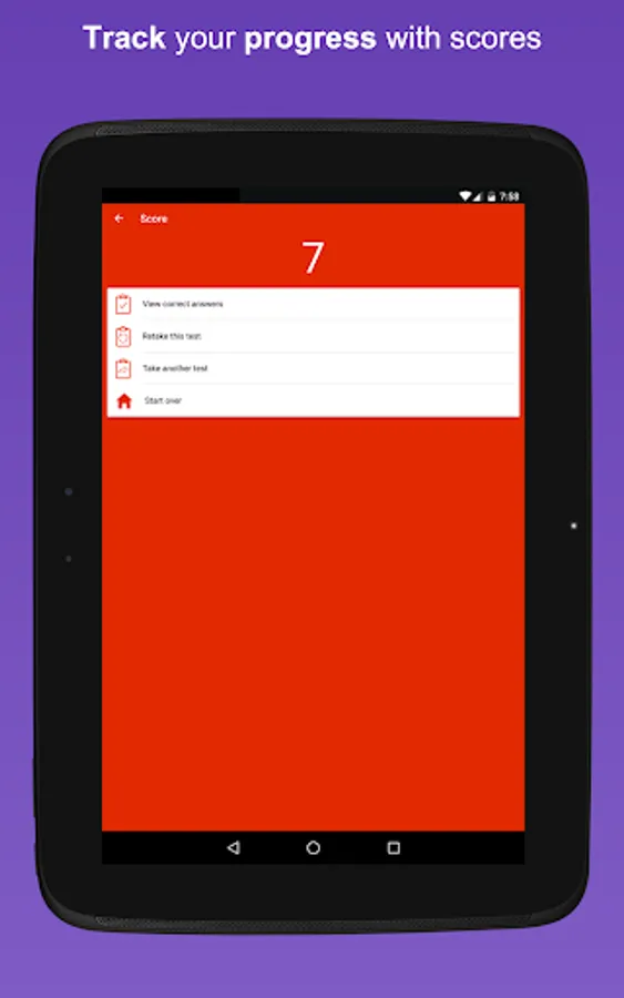 Take timed tests or study using flash cards in convenient chunks; view correct answers at the tap of a button. Get a different set in each consecutive session till you complete all the available questions in the bank.