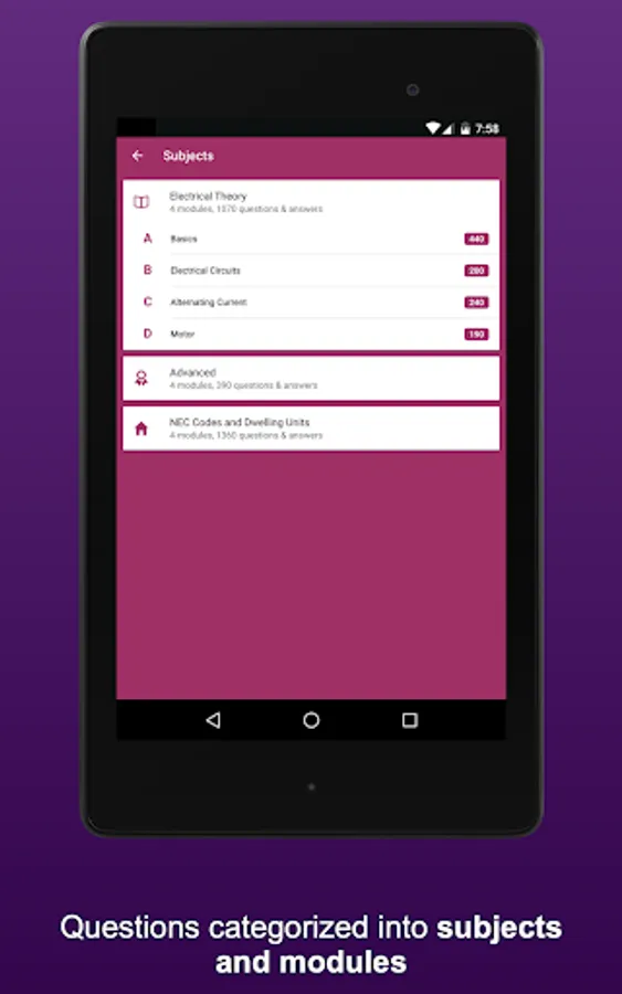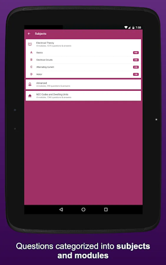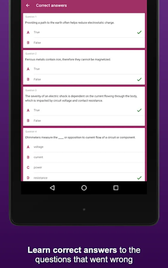 The electrician journeyman Exam Prep app consists of 2800+ multiple choice questions on various sections of National Electrical Code and basics of electrical devices and equipment. This app has multiple practice tests to practice and test your knowledge on NEC code standard and basic electrical engineering. These tests helps an electrician to self analyze that how well that he understood the NEC code and the requirements of the code to install and operate the electrical equipment safely. Our journeyman electrical exam Prep app also has reference to the most popular journeyman electrical exam books and has given journeyman electrician exam questions with answers to help the users.
