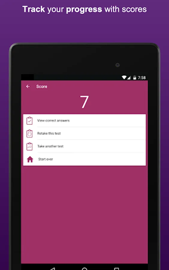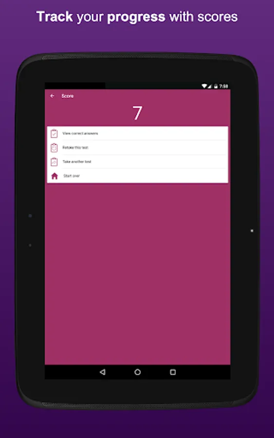 Take timed tests or study using flash cards in convenient chunks; view correct answers at the tap of a button. Get a different set in each consecutive session till you complete all the available questions in the bank.