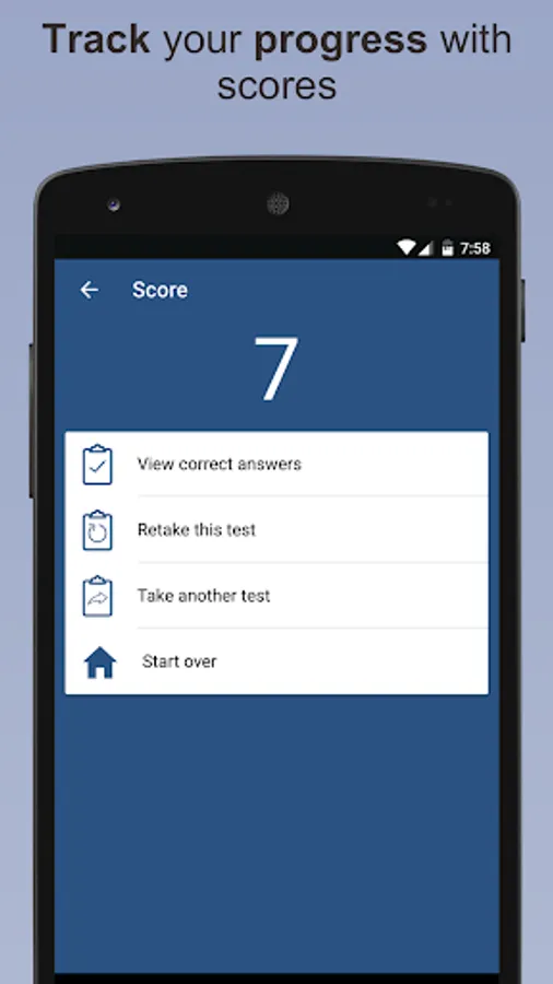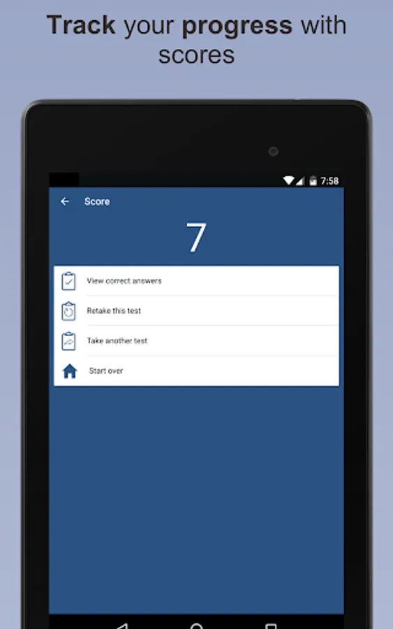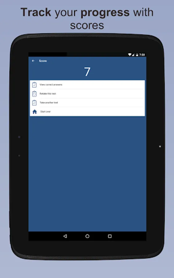 Take timed tests or study using flash cards in convenient chunks; view correct answers at the tap of a button. Get a different set in each consecutive session till you complete all the available questions in the bank.