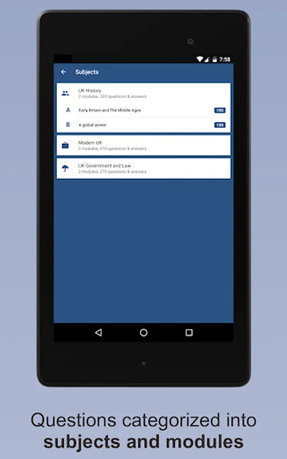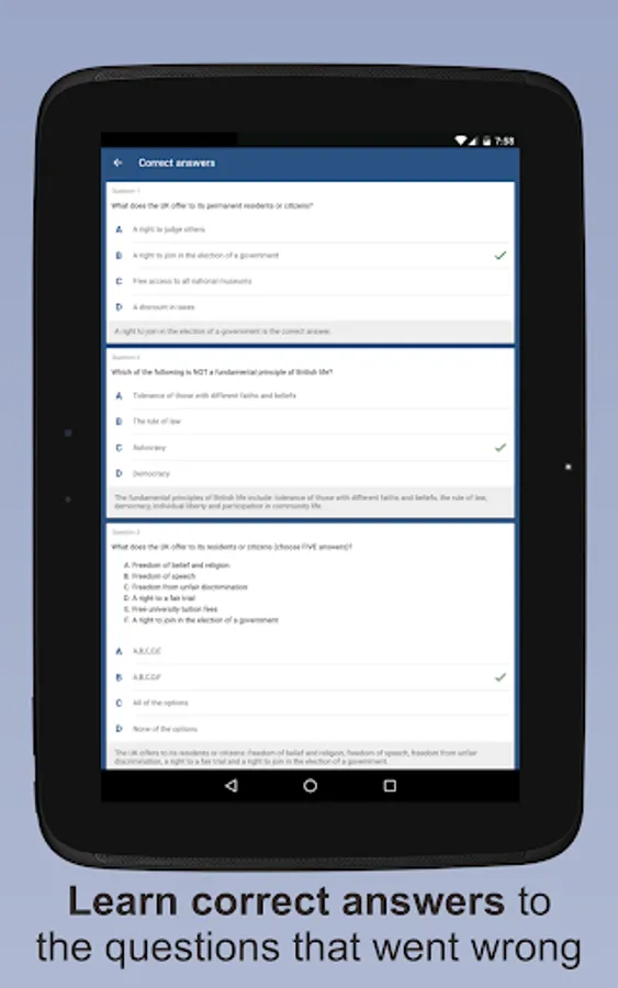 Prepare for UK Citizenship Test / Life in the UK Test with this free handy app containing 690 questions to help you practice.