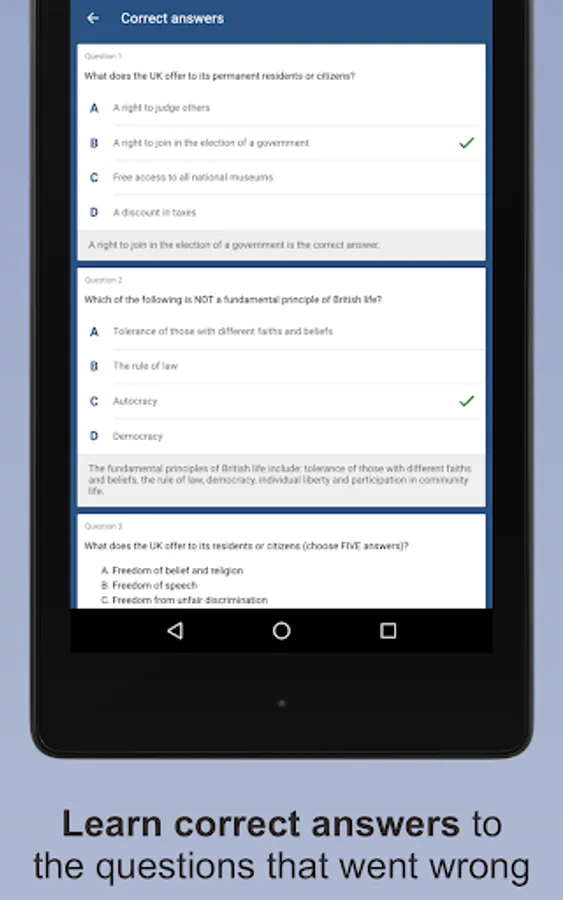 This app gives you all the content you need for preparing for the test. ‘Life in the United Kingdom'. The questions from 3rd edition handbook Life in the United Kingdom.