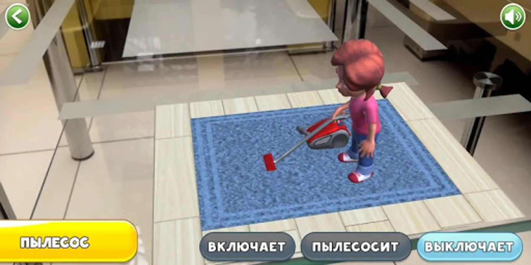 The manual is a set of 31 cards with images of household items that can be downloaded inside the application. When you hover the camera of a smartphone or tablet on the card, the augmented reality is activated, and the picture is transformed into an animation showing how the child uses the object. The animation is accompanied by poems voiced by Russian film and theater star Danila Kozlovsky.