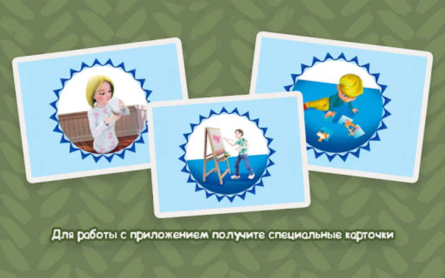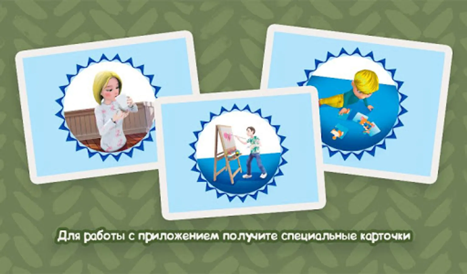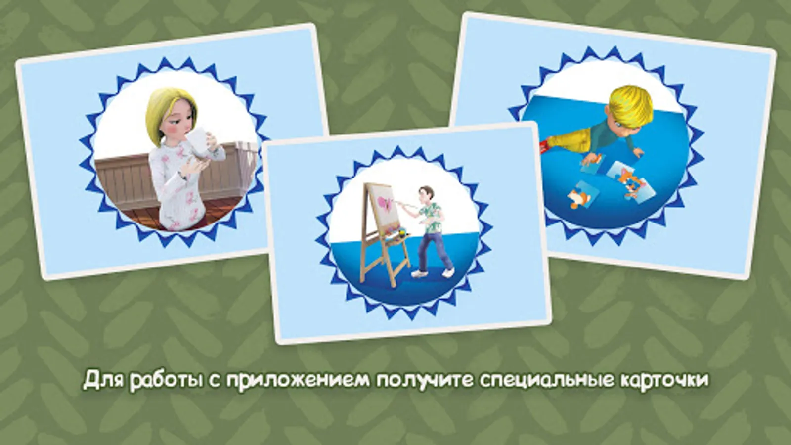 When you point the camera of a smartphone or tablet on a card, augmented reality is activated, and the picture is transformed into an animation showing the action presented. The action is performed by different actors and in different situations. Animation is accompanied by narration text that can be customized individually for each user.