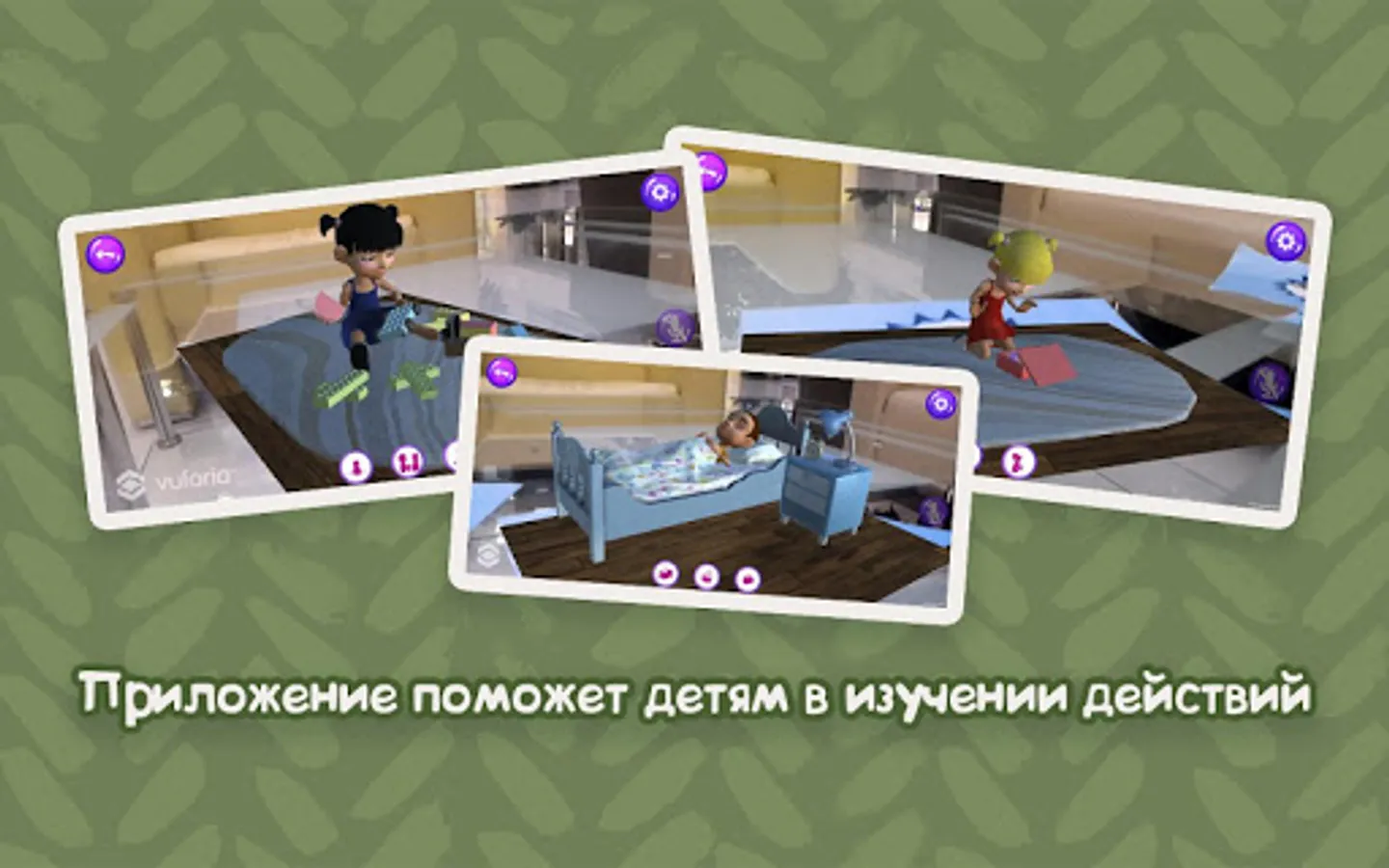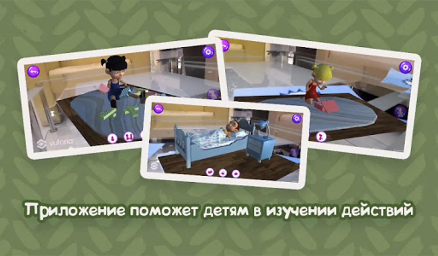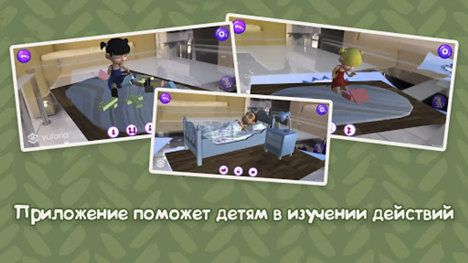 When you point the camera of a smartphone or tablet on a card, augmented reality is activated, and the picture is transformed into an animation showing the action presented. The action is performed by different actors and in different situations. Animation is accompanied by narration text that can be customized individually for each user.