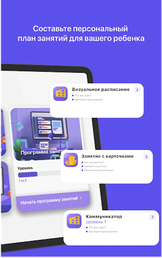 Now classes according to our methodology are available not only to specialists of centers, social support institutions and specialized psychological and pedagogical centers, but also to parents at home. The application has a training program where an experienced specialist will explain and demonstrate how to conduct a lesson at home and how to master the skill of non-verbal communication.