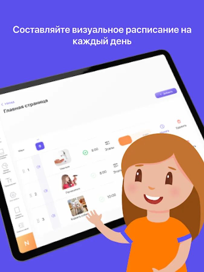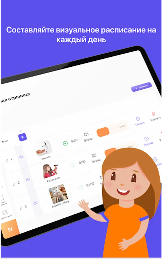 3. The Visual Schedule module allows you to create a daily schedule presented in the form of understandable pictures, you can allocate a certain time for each task and schedule it for a specific time. After completing the task, you will receive a short game as a reward