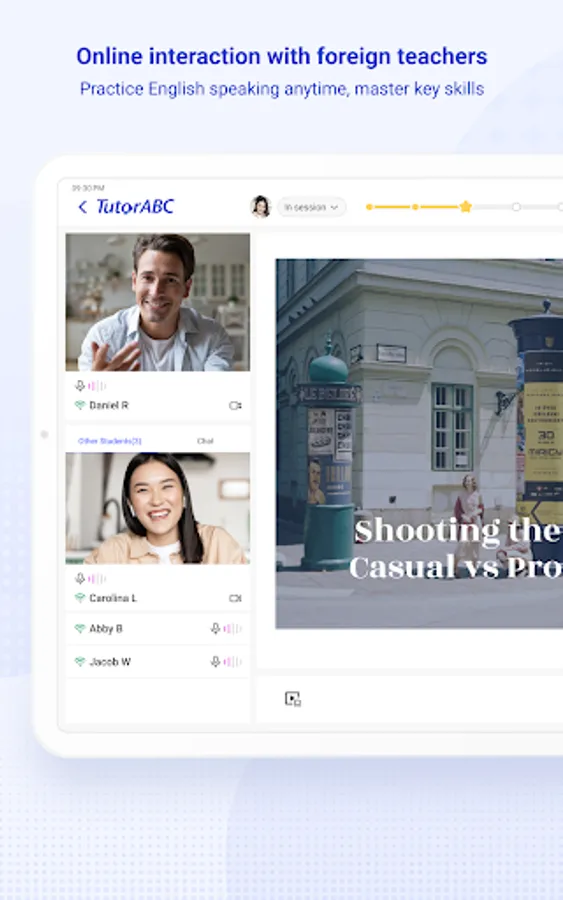 . Daily updated live auditorium: Various topics and scenario exercises, interact with foreign teachers in real-time to effectively grasp learning skills.
