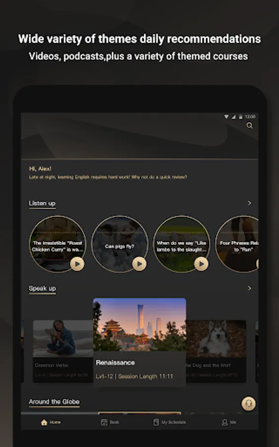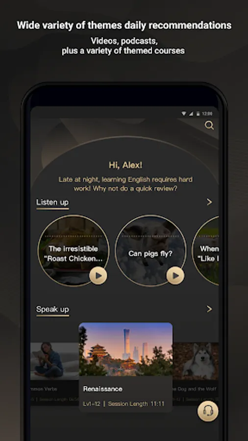 *Wide variety of themes, daily recommendations: videos, podcasts, plus a variety of themed courses