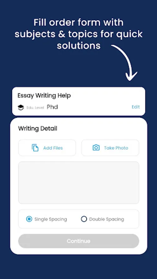 TutorBin promotes its online academic help ecosystem aiming to fill the knowledge gap in students by bringing students & tutors under one roof. Whenever you feel stuck, download the TutorBin app and sign up with your details. After signup, choose your service. Take a snap of your problem or write it with a timeline and other instructions. Once you've done it, you need to pay for the solution. After payment, our executive reviews your problem before assigning you a tutor. Once your tutor is assigned, you can directly discuss your problem with him/her. You can track your task status through your dashboard. After completing the task, you will be notified when it's uploaded.