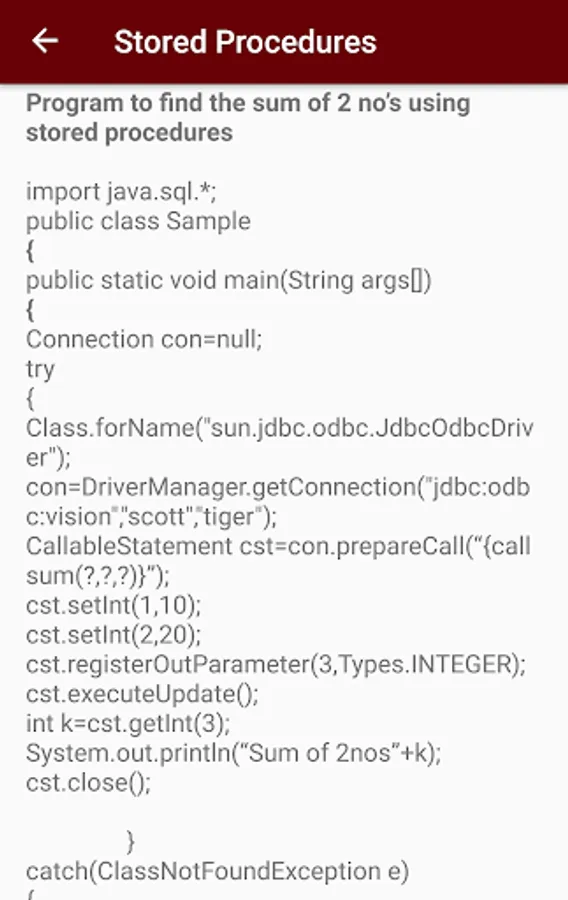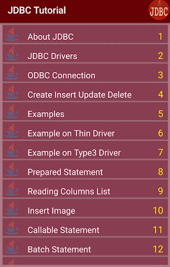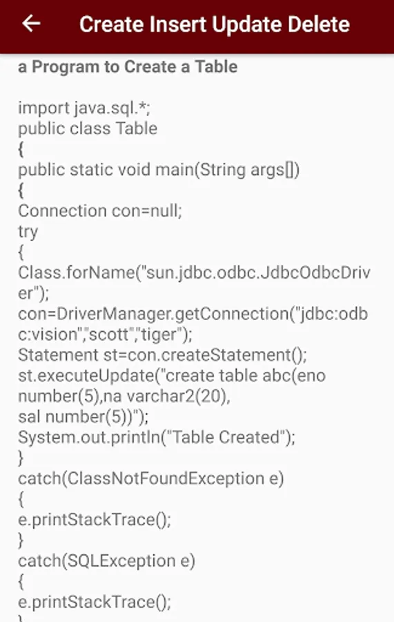 totally all topics are covered in this applications related to jdbc.