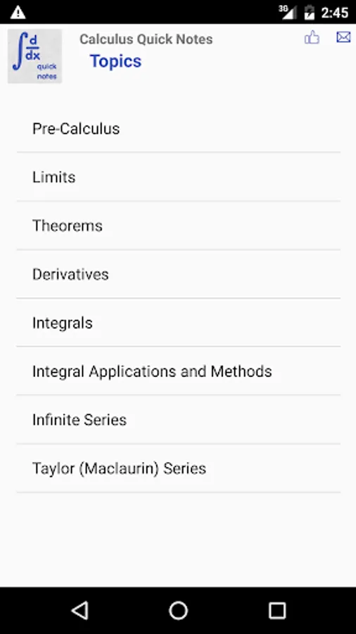This is the comprehensive go-to app for calculus students, and for people who have taken calculus and need a ready reference on calculus topics.