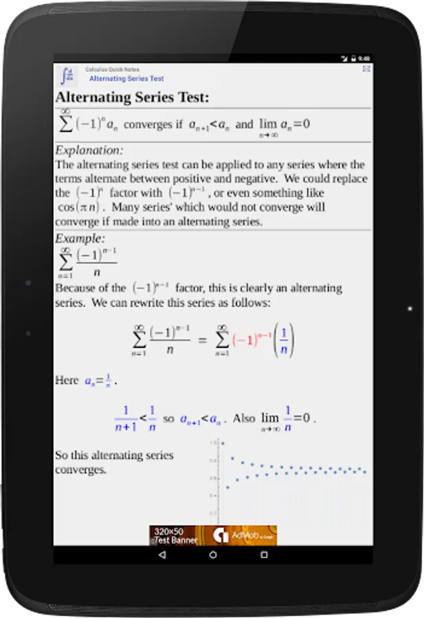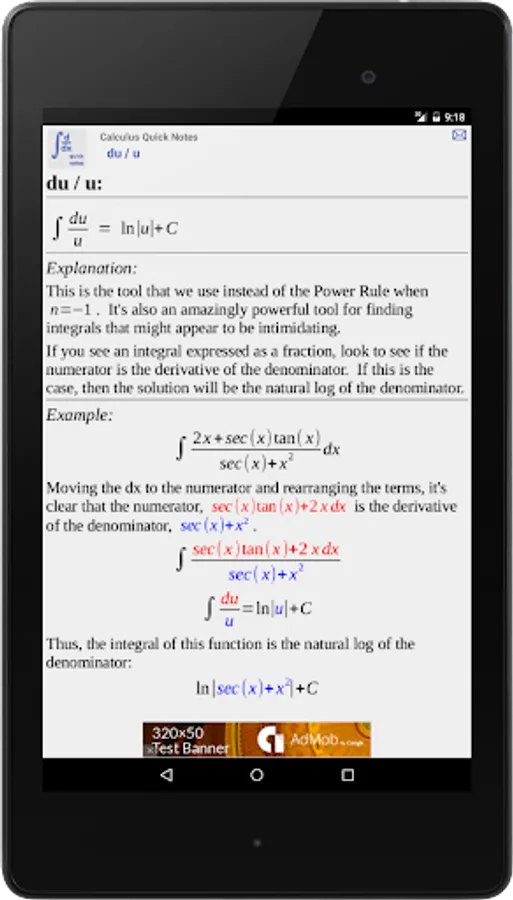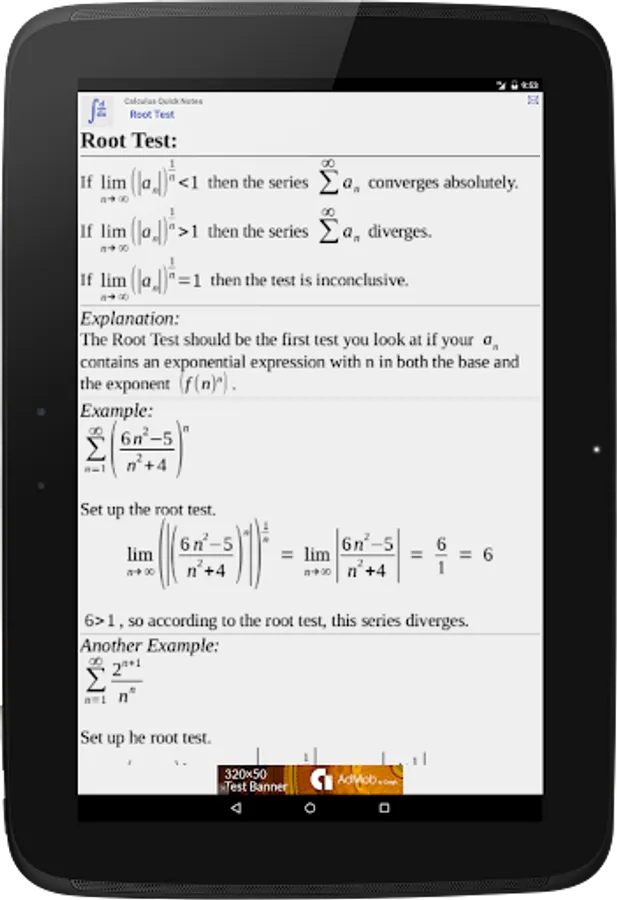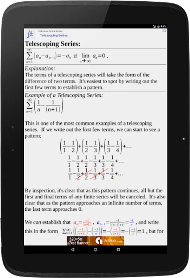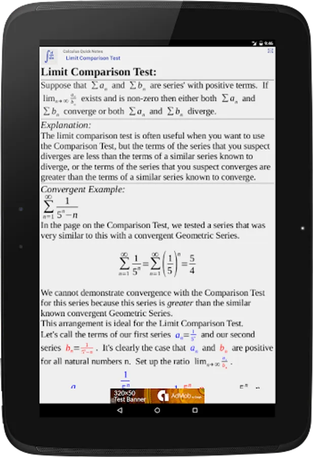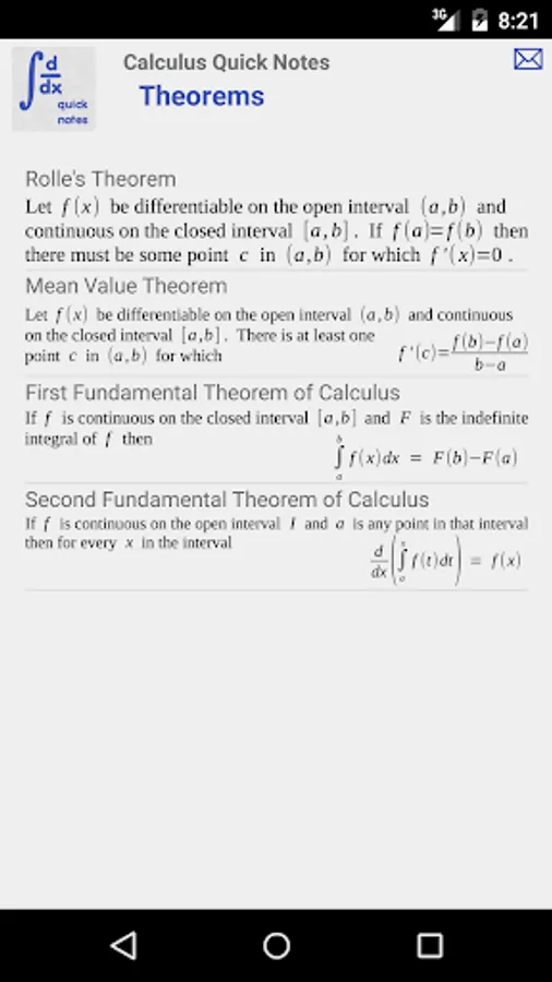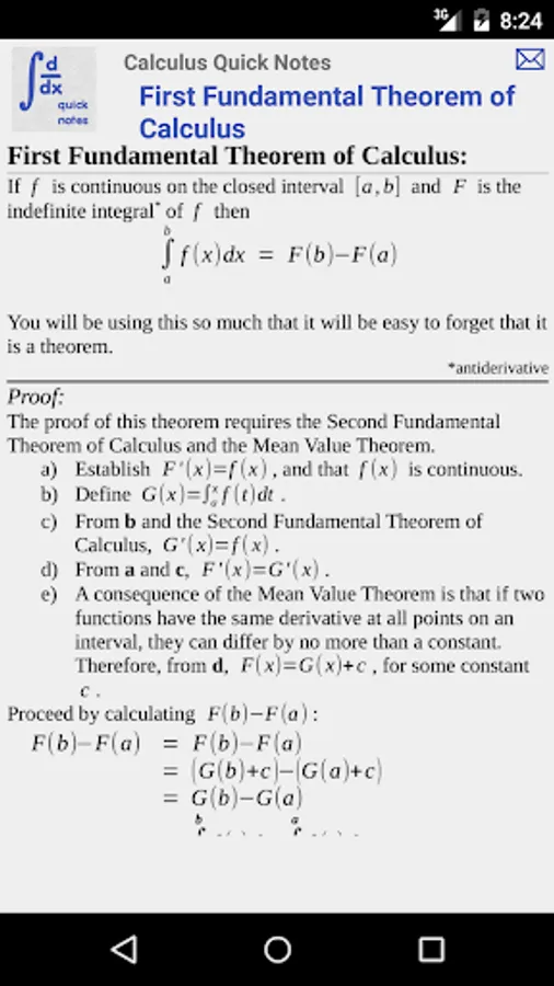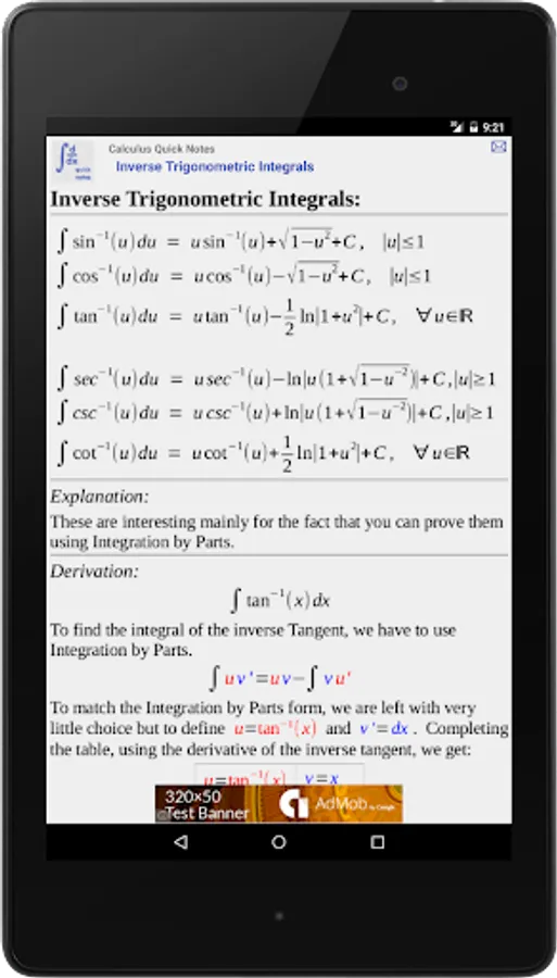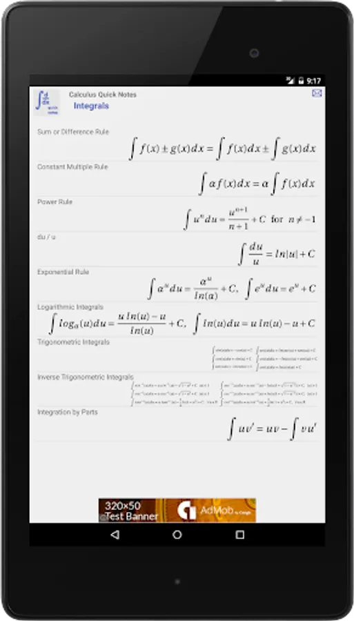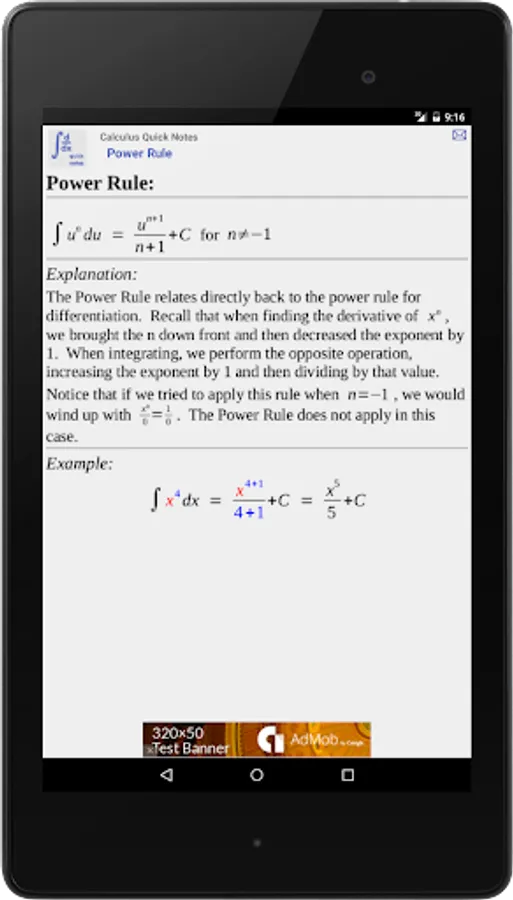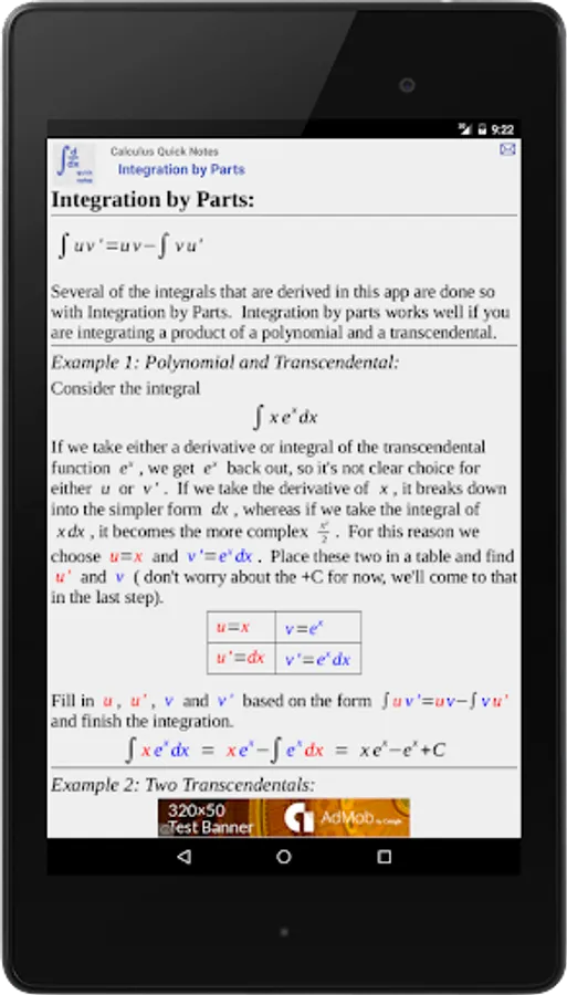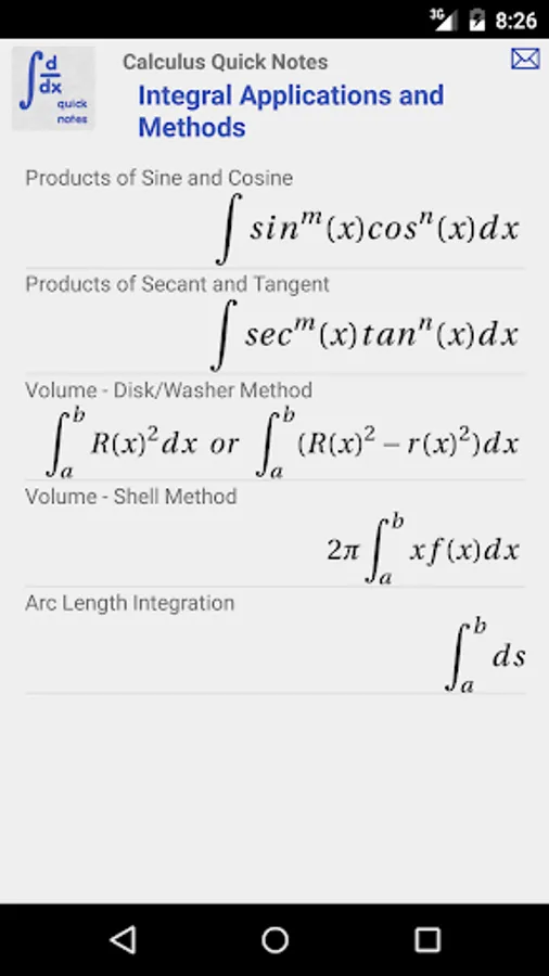 This app is updated regularly with new material. It has the most complete and useful coverage of any calculus reference app on the android market. It also includes a means to quickly email the creators from within the app with questions, suggestions or corrections.
