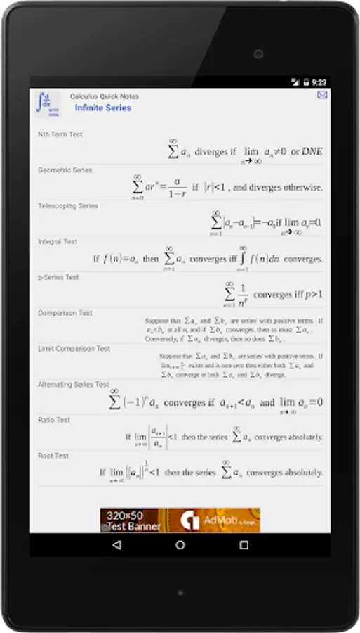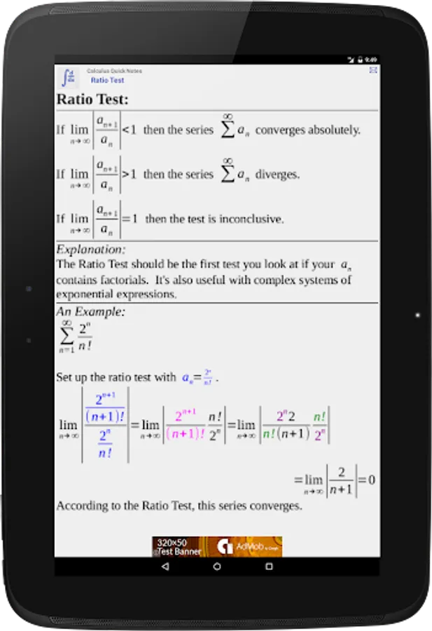 This calculus reference app is written by a mathematics tutor who has had ten years experience working with high school and college students, and understands their needs, their struggles, and with explanations that work well. It contains information on pre-calculus, limits, theorems, derivatives, integrals, integral applications and methods, and infinite series with detailed descriptions, tips and examples. Most descriptions and examples use color coded symbols to enhance student understanding.