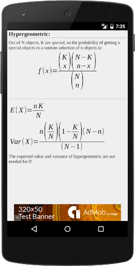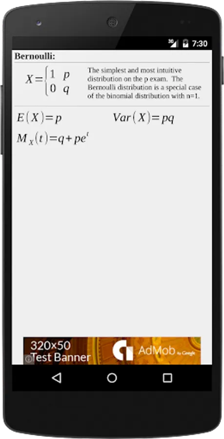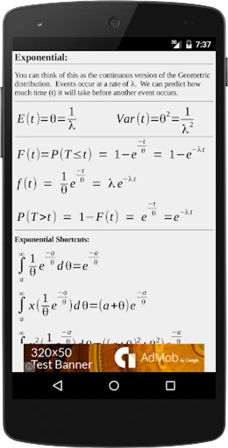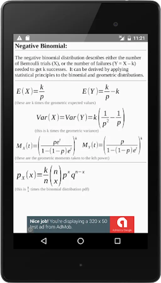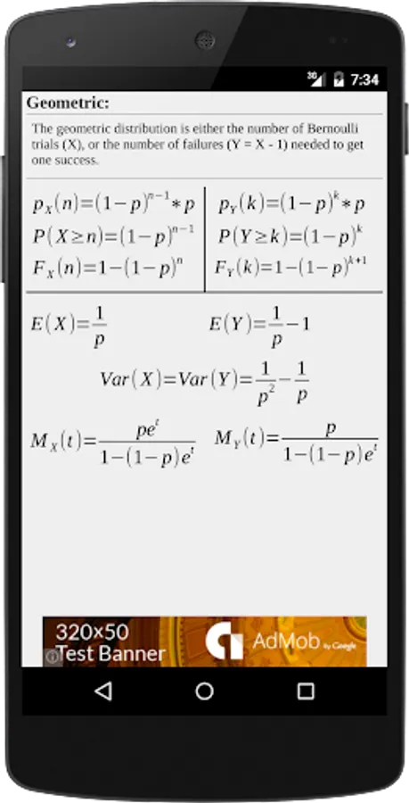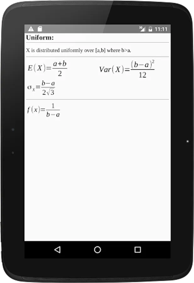 Compiled here is the most vital information on each of those distributions, Keep this app on your telephone screen while working practice problems to simplify the process of finding the formulas for the expected value, variance, and where applicable pdf, pmf, cdf and moment generating function. Each distribution has a short description of it's use.