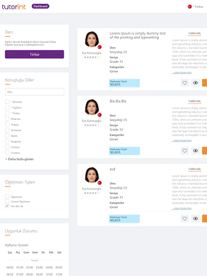 Birbirinden değerli eğitmenlerin listelendiği Tutorint’te sizler için yapılması gerekenler oldukça basittir. Eğitmenleri değerlendirme ve yorumlarına göre listeleyebilir ve bu sayede sizin için en uygun eğitmeni seçebilirsiniz. Üstelik ücretsiz eğitim seçeneği ile de eğitmenlerin başarısını test etme şansı yakalayabilirsiniz. Öğrenciler için bu avantajları sunan Tutorint, öğretmenler için de harika bir yapıdır.