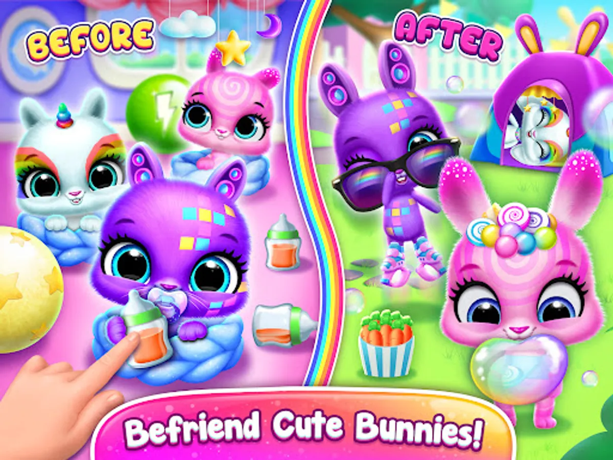 In this fun and educational game, you'll get to hatch, collect, and care for your own adorable collection of pet bunnies. From cute baby bunnies to fluffy adult bunnies, you'll learn how to give each one the love and attention it deserves. Collect, hatch & and watch your new pet friend bunny meet even more bunny friends! Become best buddies with these little pet bunnies & make sure to take good care of them.