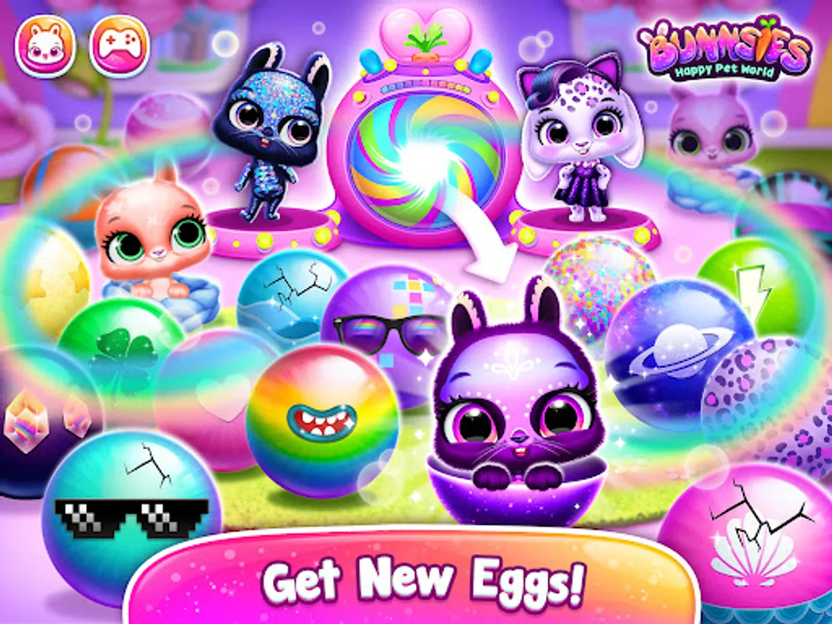 It is not enough to just collect the bunnies - when a pet baby bunny hatches, it wants to eat! Give food to help your cute baby pet grow up, bathe, feed, play with, put to bed when tired, and make the pet happy! Collect all eggs and hatch adorable virtual pet bunnies!