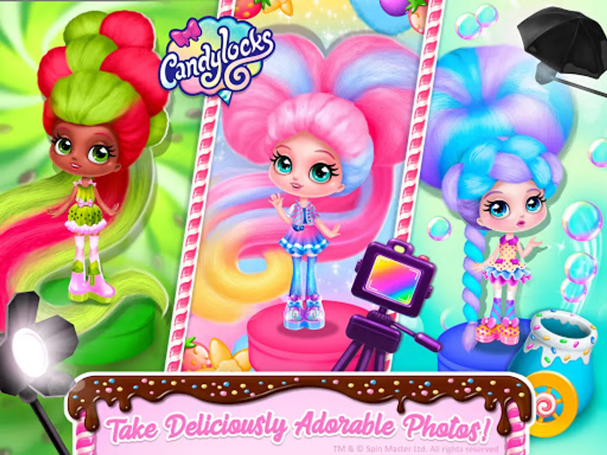 Unleash your creativity with the Candylocks™ dolls! Design sweet hair accessories. Decorate your hair salon with cute candy-inspired house decor! Take colorful photos of your fave hairstyles. New backgrounds and decor added!