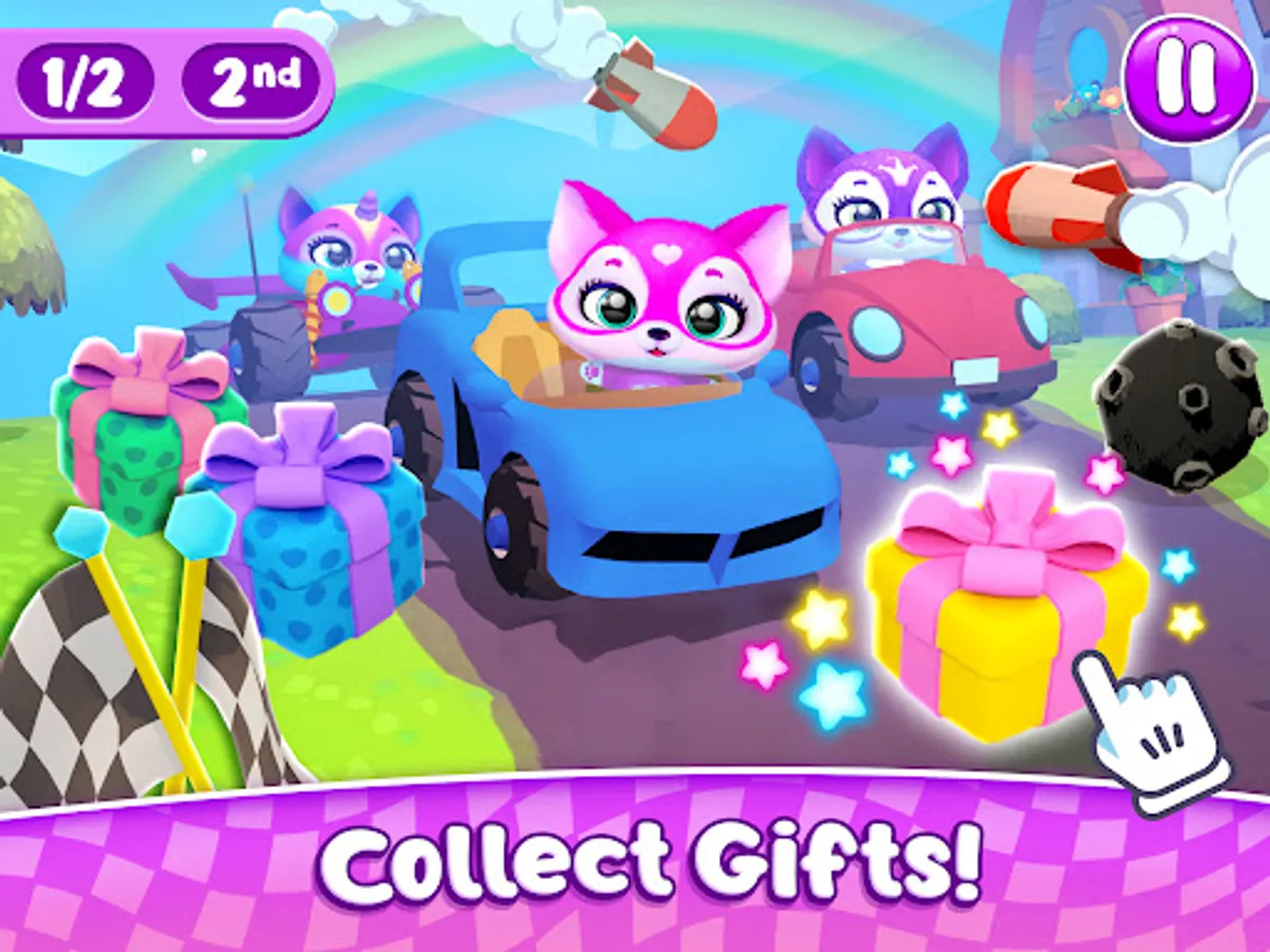 Collect coins and power-ups to give you an edge as you race through incredible road and off-road tracks and terrains. Use speed boosts, rockets, and mines to take out the competition and emerge victorious. With each race, you'll unlock new cute cars to add to your collection.