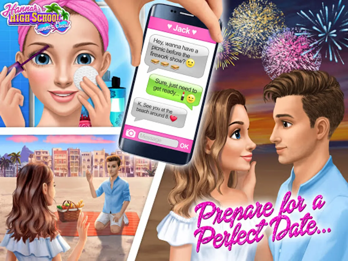 Hannah's boyfriend Jack plans a romantic date at the beach. Hannah is very excited and needs your styling skills to look like a beauty queen tonight. Join the makeover squad with Hannah's best friend Jessica, create stunning makeup looks, colorful hairstyles and amazing outfits. Get the hottest summer crush game for girls, enjoy new beauty makeover adventures, style, design and become a part of a high school love story. Play now and find out if Hannah and her boyfriend Jack’s romantic beach date ends with a kiss!