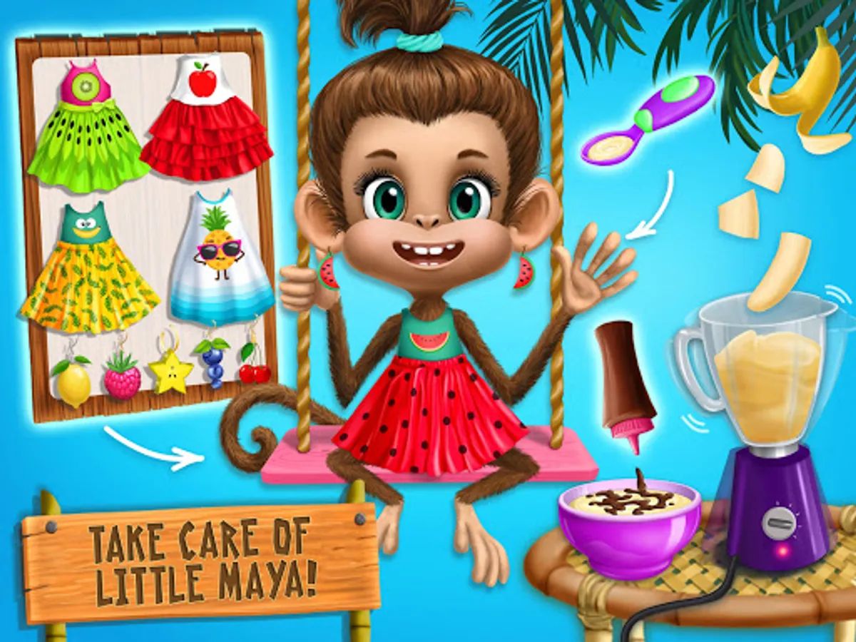 · Clean up hungry monkey Maya, feed her, dress up and do an amazing hairstyle!