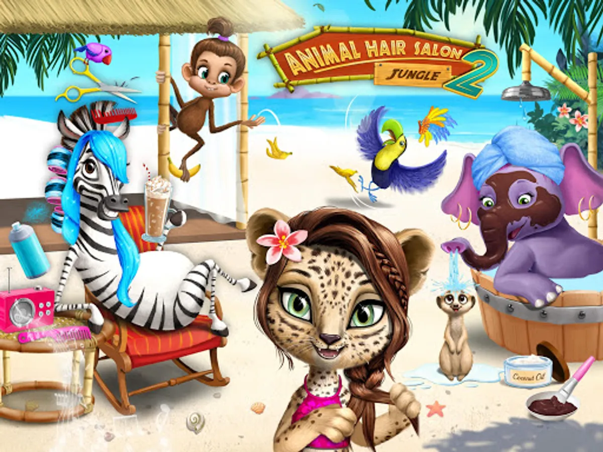 Join millions of kids in new hairstyling and beauty makeover adventures in Jungle Animal Hair Salon 2 kids game! Meet their beloved beauty salon clients at the beach and play new summer holiday makeover and pet care games for kids. Wash, dress up, style and design fun and crazy looks!