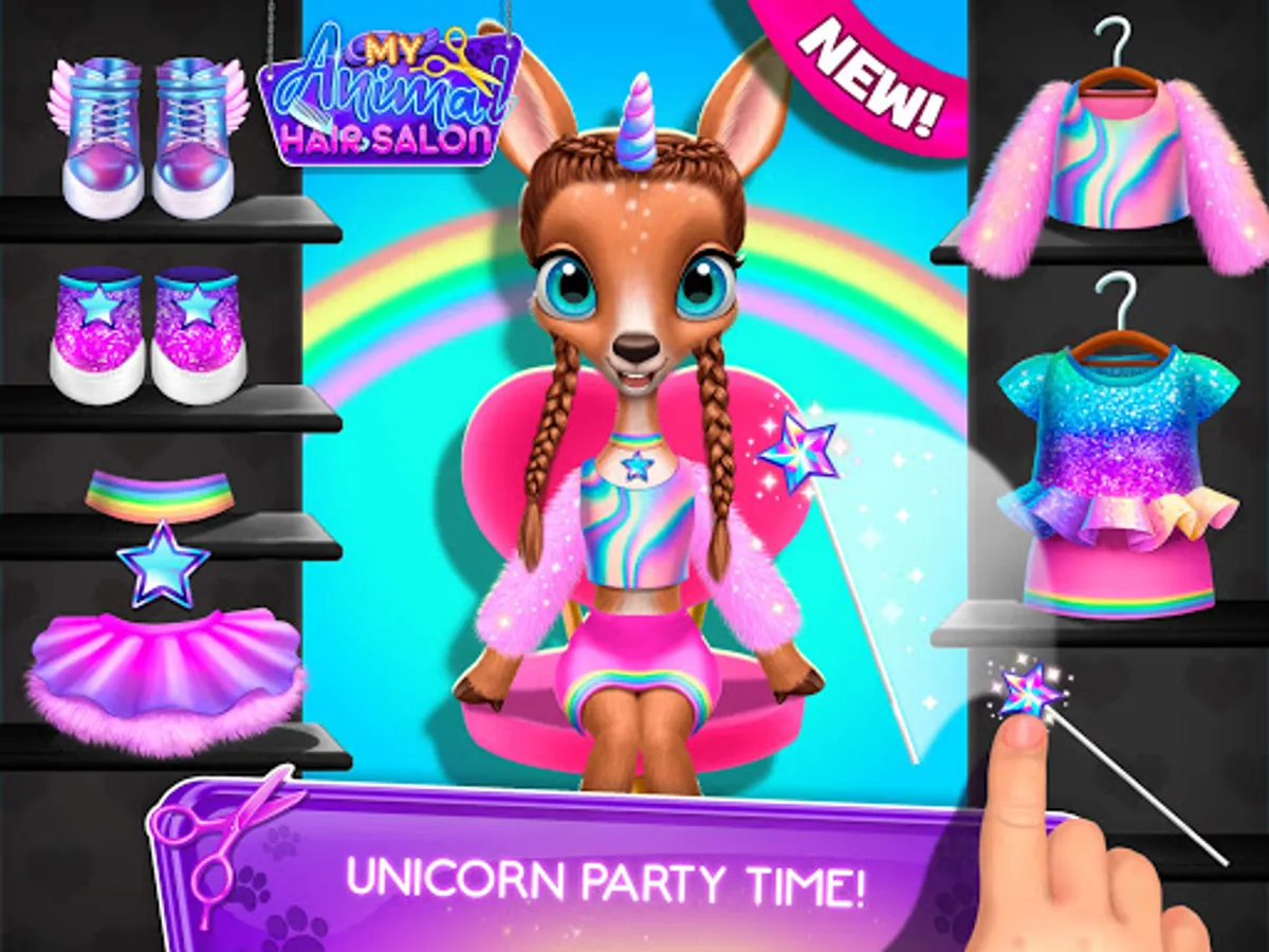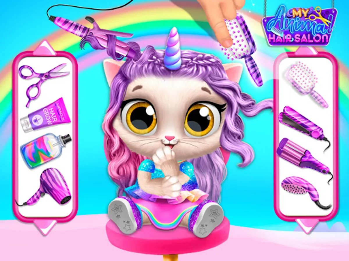 Experiment with all the hair salon tools and create the most mind-blowing hairstyles for the animals! Brush and move hair freely in any direction. Dye it in any color of the rainbow!