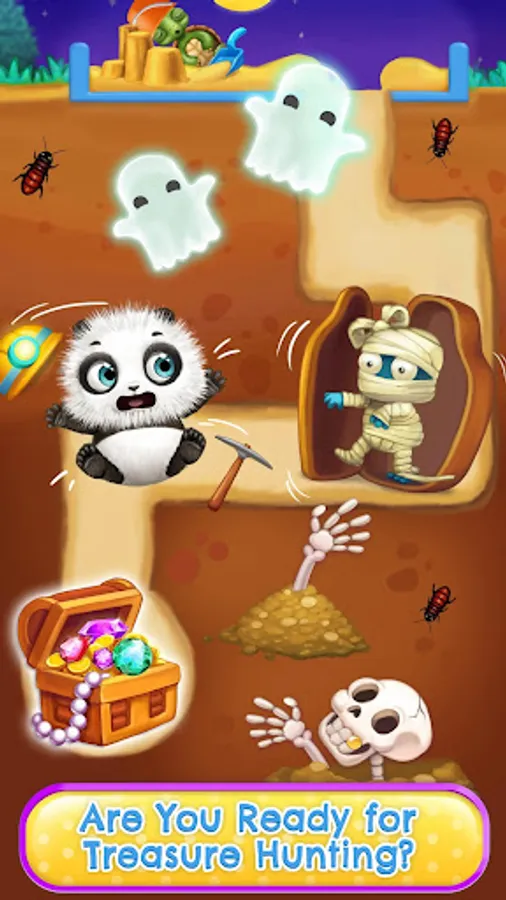 Baby panda Lu can’t wait to go outside to play with friends - baby birds and animals! The backyard playground is full of fun! What about going treasure hunting and gold mining? Or building the most amazing sand castles? Even a simple tire can be fun if you think creatively! Try to get these juicy apples from the tree - that’s quite a challenge for baby panda Lu!
